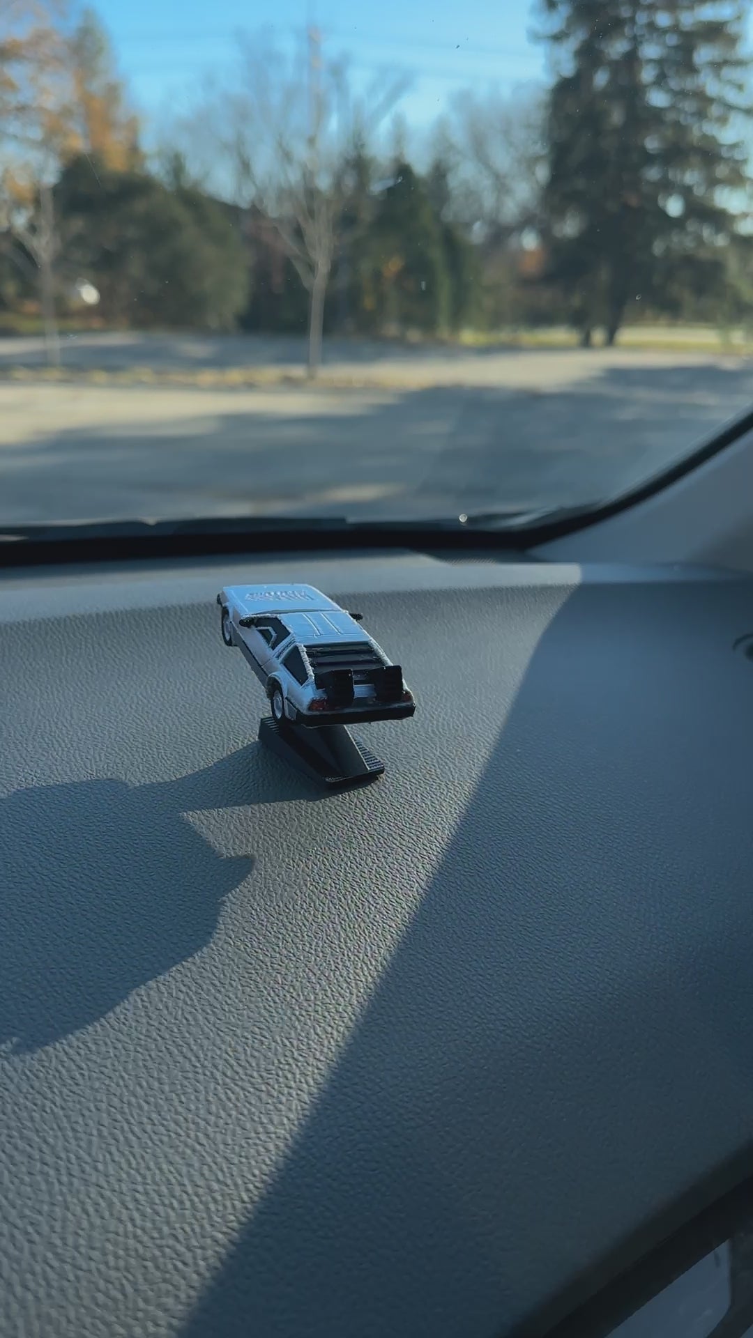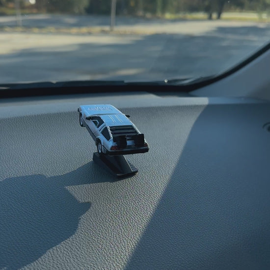Great Scott! Add some time-travelling flair to your daily drive with this DeLorean Time Machine dashboard drift ornament! This miniature car is designed to swivel and spin with every turn, giving the illusion of the DeLorean drifting through time and space right on your dashboard.