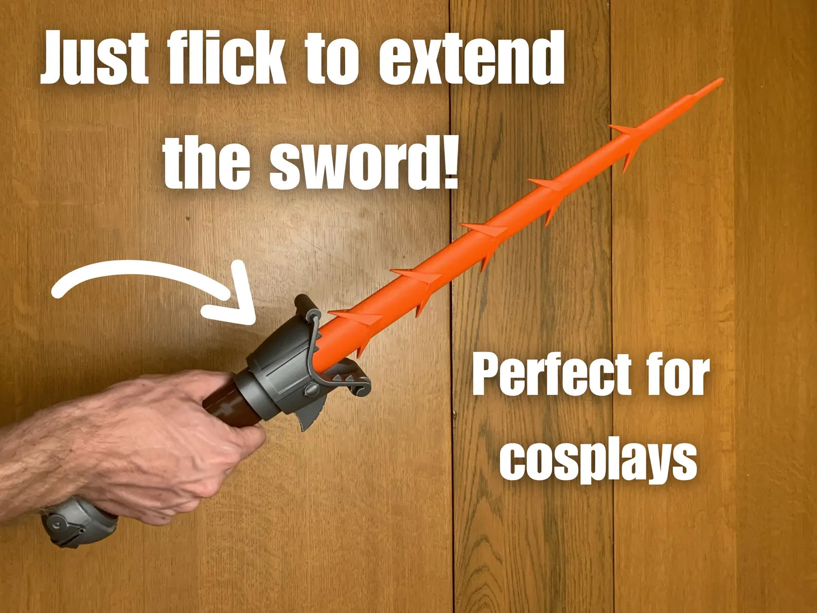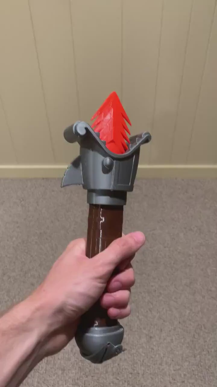 This 3D printed replica of Hiccup's flaming sword from How To Train Your Dragon is fully extendable and retractable! It is packed with cool details from the movies including a blade that looks like a flame, a dragon-mouth-shaped hilt, and a moving lever on the pommel. If you ever had a plastic extendable toy lightsaber as a kid, this works in the same way. Simply flick your wrist/arm and the blade will extend from the hilt.