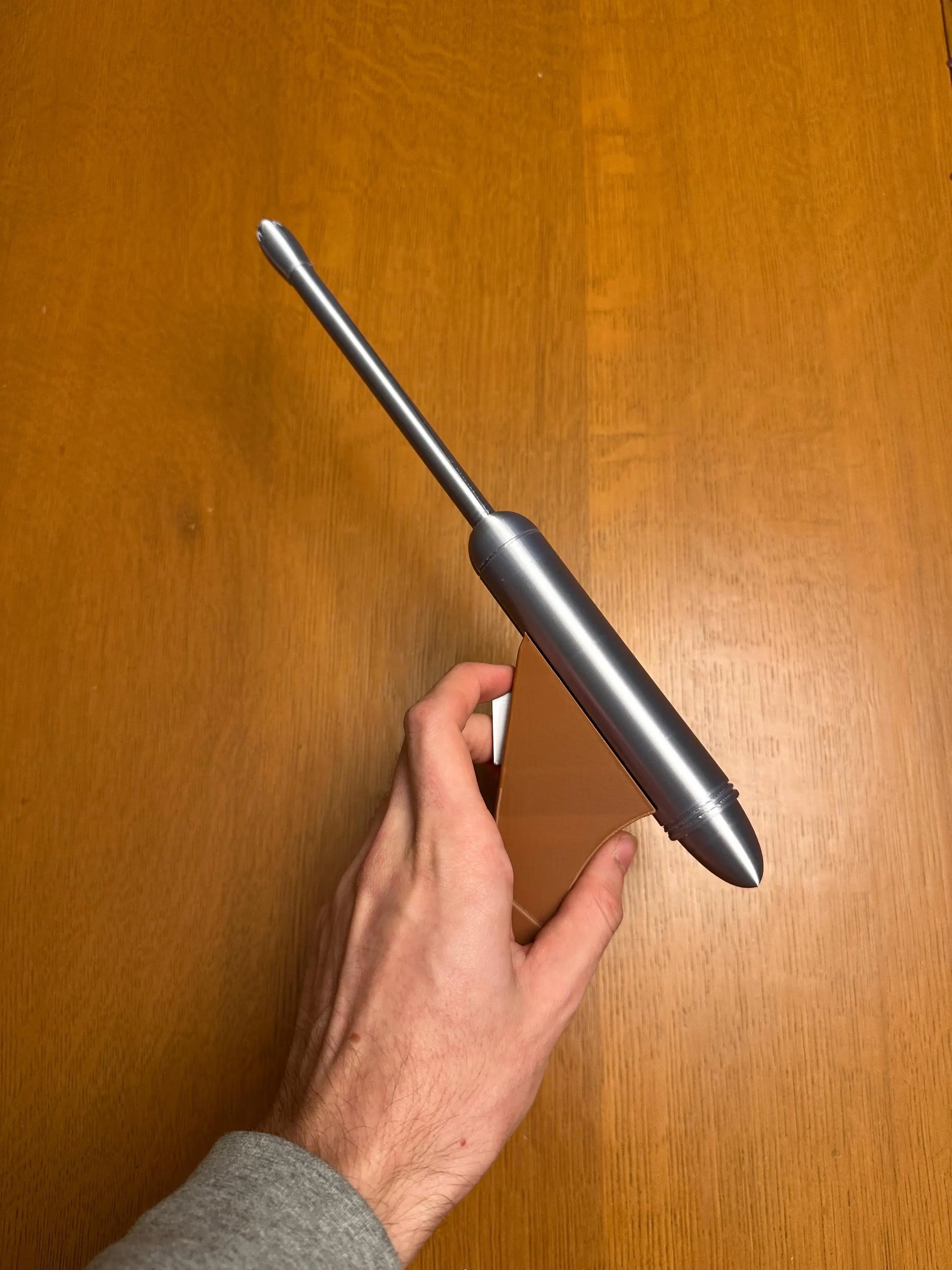 -3D printed in durable PLA with silver and brown finish